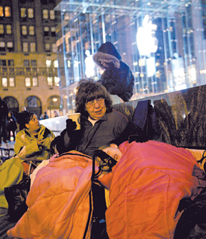 وقال موظف في متجر آبل في الجادة الخامسة بنيويورك مساء الجمعة: عندما نغلق أبواب المتجر في منتصف الليل،