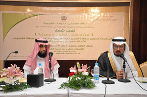 قام مكتب التربية والتعليم في شمال مدينة بريدة اللقاء الفصلي للقيادات التربوية بالمدير العام للتربية والتعليم للبنين بالقصيم الأستاذ فهد بن عبدالعزيز الأحمد تحت شعار (أمن ورخاء.. تطور ومعرفة) أمس الاثنين. بحضور مساعده للشئون المدرسية الأستاذ محمد الحنايا، ومشرف التعداد العام للسكان والمساكن بمنطقة القصيم الأستاذ تركي القريني، ومدير مكتب التربية والتعليم في شمال بريدة الأستاذ عبدالله العجلان، وعدد من مديري الأقسام، والمشرفين ومديري المدارس في مكتب شمال بريدة. وقد بدئ اللقاء بالقرآن الكريم، تلاه أوبريت إنشادي بعنوان (تعداد.. تطور.. معرفة).