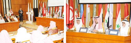 ورحب معالي رئيس الجامعة في كلمته بسمو مستشار خادم الحرمين الشريفين وقدم له الشكر على تشريف افتتاح هذا البرنامج المهم الذي تنظمه الجامعة وهو الثالث من نوعه في الجامعة حول نظم العدالة العربية والدولية، ويأتي في إطار التعاون المستمر بين الجامعة والمجلس الأعلى للقضاء بالمملكة للارتقاء بقدرات العاملين في السلك القضائي حتى يكونوا على دراية كاملة بأدق المتغيرات والمستجدات على كل الصعد، مؤكداً أن المملكة العربية السعودية من أوائل الدول التي أولت القضاء جل عنايتها واهتمامها فهو من اللبنات الأساسية للدول.