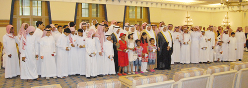 استقبل صاحب السمو الملكي الأمير فيصل بن بندر بن عبدالعزيز أمير منطقة القصيم بحضور صاحب السمو الملكي الأمير الدكتور فيصل بن مشعل بن سعود بن عبدالعزيز نائب أمير منطقة القصيم في مكتب سموه بمقر ديوان الإمارة في مدينة بريدة أمس أبناء دار التربية الاجتماعية بمدينة بريدة وأطفال دار الحضانة بمحافظة عنيزة بمناسبة (يوم اليتيم العربي) لهذا العام 1431هـ والذي ترعاه وزارة الشؤون الاجتماعية على مستوى مناطق المملكة. وقد رحب بهم سموه الكريم، مشيداً بالدعم اللا محدود الذي تقدمه حكومة خادم الحرمين الشريفين الملك عبدالله بن عبدالعزيز - حفظه الله - من دعم ورعاية لهذه الفئة الغالية على نفوس الجميع. وقدم سموه الكريم هدايا للبنين والبنات بهذه المناسبة الذين شكروا سموه على حنانه الأبوي. حضر الاستقبال مدير عام الشؤون الاجتماعية بمنطقة القصيم الدكتور فهد المطلق ومدير دار التربية الاجتماعية ببريدة الدكتور إبراهيم الضبيب.