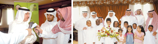 والتقى د. العثيمين بعدد من أطفال دار الحضانة الاجتماعية للبنين والبنات والتقطت صور تذكارية بهذه المناسبة. يذكر أن فعاليات هذا اليوم بدأت يوم الاثنين الماضي في دور التربية الاجتماعية للبنين والبنات ودور الحضانة الاجتماعية والإدارات العامة للشؤون الاجتماعية ومكاتب الإشراف النسائي الاجتماعي في مختلف مناطق المملكة بفعاليات ثقافية ورياضية ومسابقة للقرآن الكريم وحفظ بعض أجزائه، وكذلك المسابقة الثقافية الأولى ومسابقة أفضل رسالة من يتيم لسمو ولي العهد بمناسبة عودته سالماً معافى، وإقامة مسابقة أفضل رسالة يتيم إلى الجنود البواسل على حدود المملكة العربية السعودية، والمهرجان الرياضي، والحلقات العلمية، والسوق الخيري، ومعرض خاص باليتيم، ومعارض للكتب وأنشطة مكتبية وجناح للإصدارات والمطبوعات، وجناح للصور والمجسمات، وجناح إنتاج وإسهامات الأيتام الثقافية والعلمية والفنية رغبة من وزارة الشؤون الاجتماعية في إنجاح هذا اليوم.