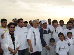 مارس عدد من المسؤولين ورجال الفن والثقافة تمارين الإحماء الرياضية أول من أمس الخميس احتفاء بيوم الصحة العالمي الذي يوافق السادس والسابع والثامن من شهر أبريل الذي تتبناه منظمة الصحة العالمية، بمبادرة «ألف مدينة ألف حياة».
