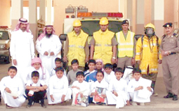 بمناسبة اليوم العالمي للدفاع المدني قام عدد من طلاب مدرسة غسلة الابتدائية بزيارة لمركز الدفاع المدني بشقراء رافقهم في هذه الزيارة المعلم عبدالكريم العمار والمعلم سعد محمد السعد وقد كان في استقبالهم مدير إدارة الدفاع المدني النقيب عبدالعزيز اليوسف ومدير شعبة العمليات النقيب خالد العتيبي ورئيس وحدة الروضة بشقراء رئيس الرقباء صالح الشايع حيث بدأ الطلاب بجولة على وحدات المركز واستمعوا خلالها لشرح مفصل لعمل الدفاع المدني في مجال الكوارث وكيفية تجنب حدوثها والتعامل معها أو الحرائق وسبل إطفائها والوقاية منها وكيفية التصرف في حالة حدوثها لا سمح الله بعدها تم توزيع بعض النشرات الإرشادية على الطلاب تساعدهم في معرفة بعض الإرشادات في مجال الحرائق والكوارث وفي ختام الزيارة قدم مدير مدرسة غسلة بالقرائن محمد الحمر شكره وتقديره لمدير الدفاع المدني بشقراء النقيب عبدالعزيز اليوسف ولجميع العاملين معه لتسهيل هذه الزيارة وتقديم المفيد للطلبة في مجال الحماية من الأخطار.