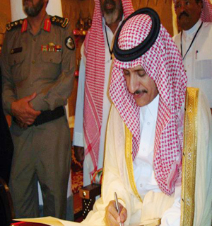 وعقب ختام الزيارة سجل سموه كلمة في سجل الزيارة قال فيها: سرني هذا اليوم ما رأيت في متحف المزعل والذي يحتوي على كثير من الأشياء القديمة مقدماً شكري إلى القائمين على المتحف.