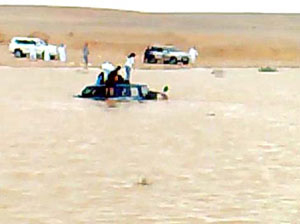 ضلت عائلة طريقها بسبب الغبار الكثيف، الذي ضرب محافظة طريف والمناطق البرية المجاورة وتسبب في تدني مجال الرؤية الأفقية، لتجد العائلة نفسها في وسط المياه التي تقع شرقي سد الجراني.