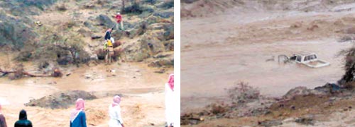 فيما تمكنت فرق الدفاع المدني من إنقاذ خمسة أشخاص كانوا عالقين في الوادي نفسه بعد أن جرفتهم السيول.