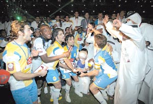 أحرز الغرافة كأس ولي عهد قطر لكرة القدم بعد فوزه الكبير بخمسة أهداف مقابل لا شيء على العربي في المباراة النهائية للبطولة امس السبت. وسجل يونس محمود وكليمرسون هدفين لكل منهما وأضاف سعد الشمري هدفا ليحرز الغرافة اللقب للمرة الثانية في تاريخه.