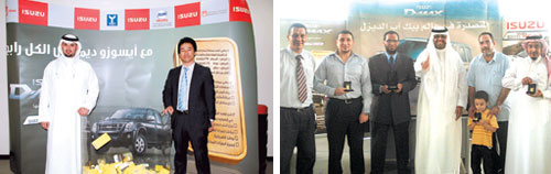 نظمت شركة إيسوزو تايلند المحدودة للسيارات مسابقة مفتوحة لجميع عملائها بالمملكة تحت شعار «حملة الذهب» انطلقت في 15 فبراير 2010م بجميع فروعها عن طريق موزعيها المعتمدين، وتأتي هذه المسابقة بعد النجاح الكبير الذي حققته إيسوزو دي ماكس خلال تجربة الأداء الأولى من نوعها في الشرق الأوسط على المسافات الطويلة، والتي أقيمت الشهر الماضي، تم خلالها استعراض قدرات ومميزات السيارة، حيث قطعت دي ماكس المسافة من الرياض إلى جدة بخزان وقود واحد أثبتت تفوقها على مثيلاتها من سيارات فئتها، وذلك في مناسبة حضرها مجموعة كبيرة من الإعلاميين والموزعين المعتمدين لدى إيسوزو بالمملكة. وخلال الحملة التي استمرت حتى 15 مارس 2010م قدمت إيسوزو دي ماكس مجموعة من الجوائز القيمة، حصل خلالها صاحب المركز الأول على ربع كيلو من الذهب، كما حصل ثمانية من الفائزين على أونصة ذهب واحدة لكل شخص، بالإضافة إلى سيارة إيسوزو لعبة بالريموت كنترول لـ 20 فائزاً. وتهدف إيسوزو إلى التواصل مع عملائها من خلال المسابقات والفعاليات المستمرة والتي تعتبر جزءا من استراتيجيتها التي لا ترتكز على تقديم منتجات ممتازة فحسب، بل أيضا إلى المشاركة الفعالة مع المجتمع. وفي حديث مع أحد المديرين المسؤولين في شركة إيسوزو تايلند صرح قائلاً: نحرص من خلال هذه الحملة على مكافأة عملائنا الذين ساهموا معنا في تعزيز مكانه إيسوزو دي ماكس بالمملكة العربية السعودية وكان لهم الدور الرئيسي في تحقيقنا للنجاح، وسنستمر في السير على نهجنا والتواصل مع عملائنا من خلال تقديمنا أفضل الخدمات التي تتناسب مع احتياجاتهم».