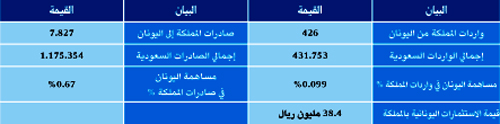 جدول (1) مساهمة اليونان في الصادرات والواردات السعودية في عام 2008م (مليون ريال)