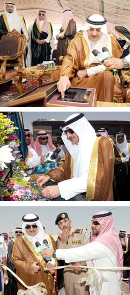إثر ذلك دشن سموه ووضع حجر الأساس لمشاريع طرق في محافظتي الوجه وأملج بتكلفة اجمالية بلغت 362 مليون واستمع سموه الى شرح من مدير عام الطرق والنقل بالمنطقة المهندس خالد الوكيل عن المشاريع الخاصة بالطرق بمحافظة الوجه , بعد ذلك قام بافتتاح مستشفى الوجه العام الجديد بسعة 200 سرير وافتتاح ثلاثة مراكز صحية في الخالدية وابو القزاز وخرباء بتكلفة اجمالية بلغت 240 مليون ريال.حيث أقيم حفل خطابي بهذه المناسبة بين فيه وكيل وزارة الصحة للشئون التنفيذية الدكتور منصور الحواسي في كلمته الى انه يجري حالياً إنشاء مستشفى الملك فهد بسعة 500 سرير ومستشفى الولادة والاطفال بسعة 200 سرير ومستشفى الصحة النفسية بسعة 200 سرير ومستشفيات في كل من محافظة تيماء وأملج وضباء بسعة 100 سرير لكل مستشفى اضافة الى ان عدد المراكز الصحية الجاري انشاؤها في منطقة تبوك التي تحت التنفيذ بلغت 33 مركزا للرعاية الصحية الاولية بعد ذلك تسلم سموه من د. الحواسي درعاً تذكارياً بهذه المناسبة ثم قام سموه بقص الشريط ايذاناً بافتتاح مستشفى الوجه وأزاح سموه الستار عن اللوحة التذكارية ثم تجول سموه داخل ارجاء المستشفى واطلع على التجهيزات والاقسام التي يحتويها المستشفى.