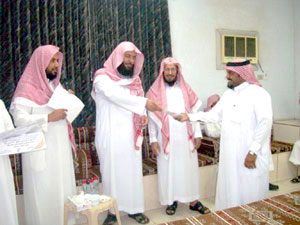 وبعد تناول طعام العشاء الذي أعد بهذه المناسبة قام فضيلة رئيس المحكمة بتكريم المتقاعدين والموظفين المتميزين والموظفين المشاركين في دورة (فن التعامل مع الجمهور) والتي خصصت لموظفي رئاسة محاكم الدوادمي.