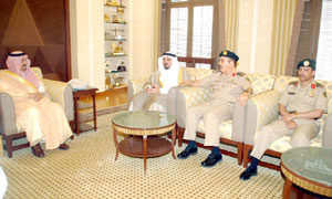 استقبل صاحب السمو الملكي الأمير فيصل بن بندر بن عبدالعزيز أمير منطقة القصيم بحضور سمو نائبه صاحب السمو الملكي الأمير الدكتور فيصل بن مشعل بن سعود بن عبدالعزيز في مكتب سموه بمقر ديوان الإمارة في مدينة بريدة ظهر أمس قائد طيران القوات البرية اللواء الطيار ركن حسين العساف الذي يزور منطقة القصيم حالياً بمناسبة انعقاد المؤتمر التدريبي السابع لطيران القوات البرية في معهد طيران القوات البرية بالمنطقة، وقد رحب بهم سموه وتمنى لهم التوفيق والنجاح في مهام عملهم وأن يكلل هذا المؤتمر في المنطقة بالنجاح التام. حضر اللقاء قائد معهد طيران القوات البرية بالقصيم العميد طيار ركن ناصر العفيف وعدد من قادة وحدات طيران القوات البرية.