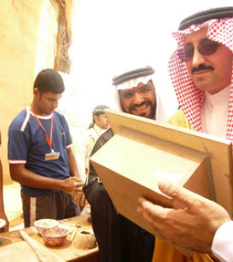 زار صاحب السمو الأمير بدر بن جلوي محافظ الأحساء مركز النخلة للصناعات الحرفية وذلك خلال افتتاحه لمعرض التراث العمراني المقام بقصر إبراهيم بالهفوف والذي يقيمه مركز التنمية الاجتماعية في الأحساء بالتعاون مع الهيئة العامة للسياحة والآثار حيث تعرف و شاهد بعض المتدربين في بعض الحرف مثل فن الخزف و تطريز البشوت والخط العربي، وشرح محمود فتحي عزالدين المدير التنفيذي لمركز النخلة للصناعات الحرفية طريقة التدريب التي يقوم بها المركز والدورات التدريبية المنفذة خلال الفترة الماضية واستعراض لإنتاج المتدربين في عدة حرف كما تم إهداء صاحب السمو الأمير بدر بن جلوي هدية من إنتاج المتدربين في حرفة الخزف وأن المركز في سبيله إلى تعميم الهدايا الحرفية لتحل محل الدروع الزجاجية والنحاسية من أجل إبراز الوجه الثقافي والفني للمملكة خارجياً وداخلياً وأيضاً لتكون دافعاً للحرفيين في تحسين مستواهم.