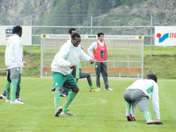 وكان لاعبو المنتخب المرشحون للمشاركة في مباراة اليوم قد خضعوا صباح أمس لفترة تدريب صباحية على ملعب المركز الرياضي بمقر إقامة البعثة بمدينة أكو دوم حيث عمد المدرب بيسيرو لتطبيق عدد من الخطط التي سيتبعها في مباراة اليوم أمام الكونغو.. وقد شارك في التدريب (وليد عبد الله - عبد الله العنزي - أسامة هوساوي - كامل الموسى - سعود كريري- مشعل السعيد - أحمد الفريدي - أحمد عطيف - عبده عطيف - نايف هزازي - سلطان النمري - محمد مسعد).. إضافة لخضوع اللاعبين عبد الله القرني وعبد الله شهيل لتدريبات بالدوران حول المضمار.. وذلك نظراً لعدم مشاركتهما في التدريبات للإصابة التي يعانيان منها والتي هي في طريقها للزوال تمهيداً لعودتهما إلى التدريبات اليومية خلال الأيام القادمة.
