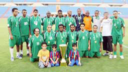 توج مستشار سمو الرئيس العام لرعاية الشباب نائب رئيس الاتحاد السعودي لرياضة ذوي الاحتياجات الخاصة إبراهيم بن علي العلي مركز تدريب الرياض لرياضة ذوي الاحتياجات الخاصة بالكأس والميداليات الذهبية, عقب فوزه بنتيجة 5-2 على فريق مركز تدريب جدة، الذي حصل على المركز الثاني والميداليات الفضية في المباراة الختامية لبطولة المملكة لكرة القدم لذوي الإعاقة الذهنية التي أقيمت عصر أمس في استاد الأمير فيصل بن فهد بالرياض, وحصل مركز تدريب المدينة المنورة على المركز الثالث والميداليات البرونزية في البطولة التي شارك فيها 13 مركزاً.