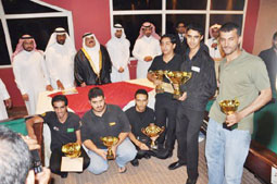 توج رئيس الاتحاد السعودي للبلياردو والسنوكر العميد حسن أبو عيش أبطال المملكة الحاصلين على كأس الأمير فيصل بن فهد للبلياردو، وذلك بصالة الرمال الترفيهية بالرياض.