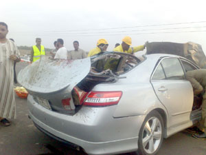 وقع فجر أمس حادث مروري مروع على طريق صبيا - أبو عريش راح ضحيته شاب في مقتبل العمر كان متجهاً لعمله. وكان الحادث وقع عندما ارتطمت سيارة كامري بجمل سائب اعترض طريقه أثناء قيادته بسرعة عالية مما أدى إلى وفاته في الحال وتعرضت الجثة لتشوهات استلزم تدخل فرقة الإنقاذ بمركز الدفاع المدني بضمد حيث تم استخراج المتوفى. وأشار المتحدث الإعلامي بمديرية الدفاع المدني في منطقة جازان الملازم مصلح الغامدي إلى أن غرفة العمليات بضمد تلقت بلاغاً عن متوفى محتجز في مركبته بعد ارتطامها بجمل سائب وتم انتقال فرق الإنقاذ للموقع ليتم فك الاحتجاز عنه ونقله للمستشفى وتم تسليم الموقع لجهة الاختصاص.