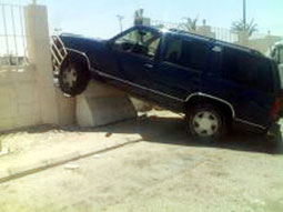 تعرضت سيارة من نوع جمس لحادث اصطدام مما تسبب في صعودها للسور الخارجي لمبنى إدارة جوازات القريات الذي يبلغ ارتفاعه أكثر من متر حيث لم يتمكن قائد المركبة من السيطرة عليها مما سبب بعض التلفيات والأضرار بالمقدمة، هذا وقد باشر الحادث رجال المرور لتنظيم حركة السير ولضمان انسيابية الطريق العام وأيضا رجال الدفاع المدني الذين تم استدعاؤهم تحسباً لحدوث أي مكروه خاصة بعد انسكاب الوقود (البنزين) على الطريق.