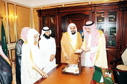 استقبل صاحب السمو الملكي الأمير محمد بن ناصر بن عبدالعزيز أمير منطقة جازان بمكتبه بمقر الإمارة أمس الأول مدير عام فرع وزارة الشؤون الإسلامية والأوقاف والدعوة والإرشاد بالمنطقة الشيخ محمد المدخلي وأعضاء اللجنة المنظمة لبرنامج الأمن الفكري الذي سيتم تنفيذه بالمنطقة اعتباراً من يوم الثلاثاء 25 جمادى الأخرة بمدينة جيزان وعدد من محافظات المنطقة. وقد رحب سمو أمير المنطقة في بداية اللقاء بمدير عام فرع الوزارة وأعضاء اللجنة المكلفة بتنفيذ البرنامج بالمنطقة متميناً لهم التوفيق في المهام المناطة بهم وتحقيق والأهداف المرجوة من البرنامج بما يعود بالنفع والفائدة على الجميع. وأشار سموه إلى ما توليه حكومتنا الرشيدة بقيادة خادم الحرمين الشريفين الملك عبدالله بن عبدالعزيز وسمو ولي عهده الأمين وسمو النائب الثاني -حفظهم الله - من دعم ورعاية لكافة البرامج والمشروعات الدعوية والإغاثية وتقديم المساعدات للمحتاجين في مختلف أرجاء المعمورة، عقب ذلك ألقى رئيس اللجنة المنظمة للبرنامج محمد المدخلي كلمة أشار فيها للنشاطات المصاحبة للبرنامج.