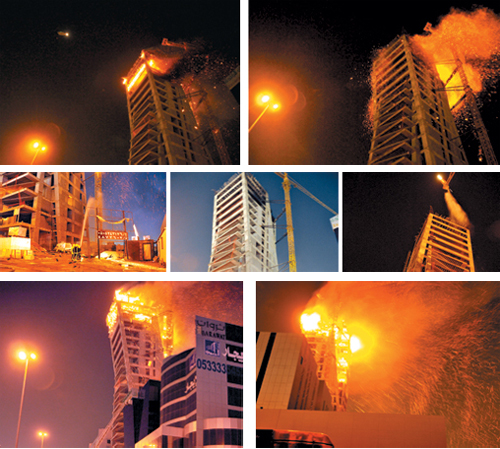شارك طيران الدفاع المدني بفعالية مساء أمس من خلال عدة طلعات في إخماد حريق هائل لبرج على طريق الملك فهد (جنوب)، كما شاركت أكثر من 25 سيارة إطفاء (وايتات) و6 عربات إخلاء و16 فرقة حريق و8 إنقاذ. من جهة أخرى اندلع حريق بعمارة سكنية مكونة من 7 أدوار في البطحاء (وسط الرياض) يسكنها عوائل وتم إخلاء ساكنيها. ونتج عن الحريق إصابة 18 شخصاً من الجنسيات الآسيوية، منهم 9 حالات تمت معالجتهم في نفس الموقع و9 تم نقلها للمستشفى لاستكمال علاجهم نتيجة الاختناقات من الدخان المنبعث من الحريق، وخرج جميع المصابين من المستشفى وهم يتمتعون بصحة جيدة مساء أمس. وقد أشرف على سير العمليات مدير الدفاع المدني بمنطقة الرياض اللواء عابد الصخيري ومدير الدفاع المدني بالرياض العميد سعيد القرني الحادث منذ ساعاته الأولى ومتابعة الحريق حتى تمت السيطرة عليه من بعد منتصف ليل أمس