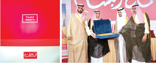 كما أكد نائب رئيس مجلس الإدارة الأستاذ سعد بن محمد العجلان أن الشعور السائد في هذا الحفل، الذي نظهر من خلاله تقدمنا خطوات أخرى إلى الأمام، هو السعادة بأن نلتقي هذه النخبة من عملائنا الكرام، كما أكد بهذه المناسبة أن شماغ البسام ما زال يلتزم بالجودة التي كانت العامل الرئيسي لاستمراره وتطويره ووصوله لهذا الكم الهائل من العملاء ولله الحمد. وقبل أن يتم تدشين شماغ البسام (البصمة 14) وشماغ المثالي والهوية البصرية الجديدة، أظهرت الشركة لمسة وفاءٍ عظيمة حينما تم تكريم مجموعة من موظفي الشركة الذين أمضوا عقوداً من الزمان ضمن كنف الشركة، وتم تكريمهم بدروع وهدايا قدمها سعادة رئيس مجلس الإدارة ونائبه، قبل أن تلتقط الصور التذكارية الجماعية للمكرمين.