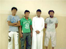 تمكنت قيادة الدوريات بجوازات منطقة تبوك بقيادة الرائد حسين بن قحصان وبمشاركة رجال هيئة الأمر بالمعروف والنهي عن المنكر وعدد من قوة المهام والواجبات بشرطة منطقة تبوك من القبض على 14 مخالفاً من الجنسية اليمنية يقيمون بطريقة غير نظامية. أوضح ذلك ل(الجزيرة) الناطق الرسمي بجوازات منطقة تبوك الذي تواجد لحظة القبض، وأفاد أن المداهمة تمت بعد التأكد من وجود مجموعة من المخالفين لنظام الإقامة بينهم متسللون وبالعرض على مقام الإمارة بالمنطقة صدرت موافقة سمو أمير المنطقة بمداهمة المنزل بمشاركة رجال من هيئة الأمر بالمعروف والنهي عن المنكر ومجموعة من قوة المهام والواجبات بشرطة المنطقة، حيث أسفرت بالقبض على أربعة رجال قدموا عن طريق التسلل وتسع نساء وجميعهم من الجنسية اليمنية ويقيمون بطريقة غير نظامية.