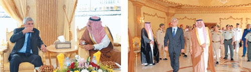 استقبل صاحب السمو الملكي الأمير خالد بن سلطان بن عبدالعزيز مساعد وزير الدفاع والطيران والمفتش العام للشؤون العسكرية بمكتبه بجدة أمس معالي وزير الدفاع الفرنسي هنري موران والوفد المرافق له. وتم خلال اللقاء تبادل الأحاديث الودية ومناقشة الموضوعات ذات الاهتمام المشترك. وأشاد معاليه