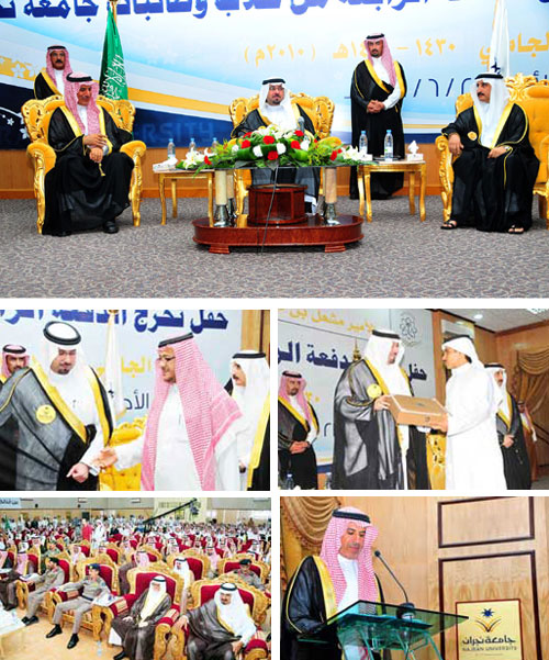 رعى صاحب السمو الملكي الأمير مشعل بن عبدالله بن عبدالعزيز أمير منطقة نجران مؤخراً حفل تخريج الدفعة الرابعة من طلاب وطالبات جامعة نجران، وذلك بمقر الجامعة في مدينة نجران. وكان في استقبال سموه لدى وصوله مقر الحفل معالي مدير جامعة نجران الدكتور محمد بن إبراهيم الحسن ووكلاء الجامعة. وبدأ الحفل الخطابي المعد لهذه المناسبة بتلاوة آيات من القرآن الكريم، ثم انطلقت مسيرة الخريجين من كليات الجامعة المختلفة.