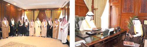 من جانب آخر استقبل سموه بمكتبه بالإمارة نائب رئيس مجلس الغرف السعودية ورئيس الغرفة التجارية الصناعية بمنطقة حائل خالد بن علي السيف وأعضاء مجلس إدارة الغرفة في دورتها الجديدة، وقد وجّه سموه بالإعداد لبرامج أوسع لغرفة حائل تتعلق ببرامج التطوير القادمة، وقد أكد نائب رئيس مجلس الغرف السعودية ورئيس الغرفة التجارية الصناعية بحائل البدء بتنفيذ توجيهات سموه على أرض الواقع مشيراً إلى أن ذلك سيكون ملموساً خلال الفترة القريبة القادمة.