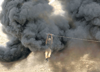 ضابط صاعقة ينفذ تمريناً بالذخيرة الحية خلال التمرين المشترك لوحدات قوات الأمن الخاصة بوادي الحيسية مساء أمس الأول..