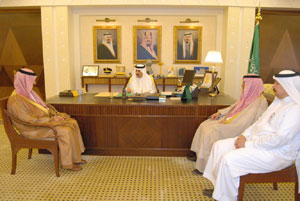 استقبل صاحب السمو الملكي الأمير فيصل بن بندر بن عبدالعزيز أمير منطقة القصيم.. وصاحب السمو الملكي الأمير فيصل بن مشعل نائب أمير منطقة القصيم في مكتبيهما بمقر ديوان الإمارة في مدينة بريدة ظهر أمس المهندس عبد الكريم الفوزان بمناسبة صدور قرار مجلس الوزراء بتعيينه وكيلاً لوزارة المياه والكهرباء للتخطيط والتطوير، ورافقه خلال الزيارة المدير المكلف للمياه بمنطقة القصيم المهندس إبراهيم الرقيبة. وقد رحب سموهما بالفوزان وتمنيا له التوفيق والنجاح في عمله الجديد.. كما أثنى سموهما على جهوده أثناء فترة عمله مديراً عاماً للمياه بالمنطقة. كما استقبل سموهما مدير عام مطار منطقة القصيم الإقليمي محمد المجلاد حيث هنأه سموهما بمناسبة تعيينه مديراً عاماً للمطار، ونوه المجلاد أنه استمع لتوجيهات سموهما التي ستكون منهجاً له.