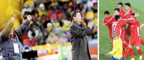 لم تحقق كوريا الشمالية المصنفة 105 عالمياً الفوز على البرازيل لكنها خرجت بانتصار معنوي بعدما هزت شباك بطلة العالم خمس مرات في مباراتهما بالمجموعة السابعة لكأس العالم لكرة القدم أمس الأول الثلاثاء. وتتذيل كوريا الشمالية تصنيف المنتخبات المشاركة في كأس العالم الحالية بجنوب إفريقيا ولم تكن لتواجه مباراة أصعب من مقابلة البرازيل المصنفة الأولى عالمياً في أول مشاركة لها بكأس العالم بعد غياب دام 44 عاماً لكن دفاعها المنظّم بشكل رائع أحبط محاولات البرازيل كثيراً قبل أن تمنى شباكها بهدفين في الشوط الثاني. وقالت وكالة الأنباء المركزية الكورية إن الفريق الذي يدربه كيم جونج هون استطاع مجاراة أسلوب لعب البرازيل خلال المباراة التي انتهت بهزيمة كوريا الشمالية 2-1 على ملعب ايليس بارك في جوهانسبرج. وذكرت الوكالة «بالنظر إلى مجريات المباراة خاض الفريقان معركة متكافئة. فقد صنع لاعبو كوريا الشمالية فرصاً جيدة للتسديد ولم يفقدوا الثقة حتى بعد تأخرهم بهدفين.» ورغم تأخرهم بهدفين عن طريق ما يكون وايلانو انتهز لاعبو كوريا الشمالية فرصة تراخي المنتخب البرازيلي وأثمر الضغط عن تسجيلهم لهدف في الرمق الأخير من عمر المباراة. وقالت وكالة الأنباء المركزية الكورية «بعد نحو 88 دقيقة من اللعب مرر جونج تاي سي كرة بالرأس إلى زميله جي يون نام الذي توغل داخل منطقة الجزاء وسددها قوية في شباك الفريق المنافس».