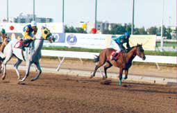 وبعد أن قاده للفوز المثير السعودي صالح صباح الشمري حيث حسم موقعة النادي التقديرية وسط انطلاقة رائعة تحكم فيها مع المسار الداخلي عندما لاح له الخط المستقيم وليقص الجواد الأبيض (يعيش) ومعه (مهاوش) وسط مطاردة حثيثة للفرس براعم والتي حلت في مركز الوصافة.