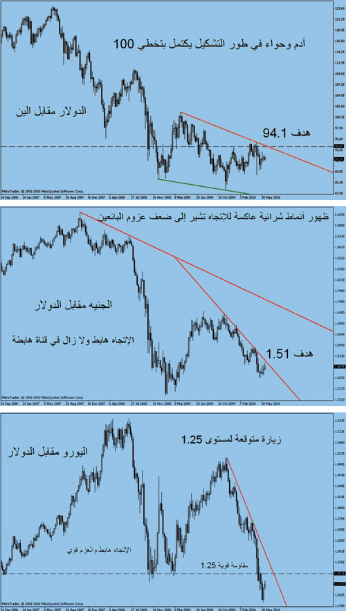 الدولار زار مستويات 88 و87 أمام سلة عملاته بوجه شاحب وكسر الاتجاه وهدفه قريب من 84 والزحام يأتي من الجنيه والين فقط، أما خام نايمكس فقد وصل إلى 77 دولاراً للبرميل ومستوى 78 صعب جداً تجاوزه فنياً، أما من حيث الأساسيات فهناك تخوف جاد من وخز البالون الصيني، حيث وصل التضخم لأعلى مستوى منذ 19 شهراً مع نمو لكل من الصادرات والواردات والعقارات والسيولة تملأ خزائن البنوك التجارية مما يضع خام نايمكس في منطقة عالية الخطورة، حيث تترقب صناديق التحوط أسعاراً أدنى للنفط على أحر من الجمر.