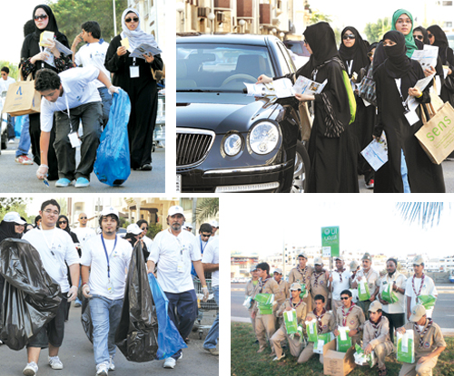 يذكر أن ما يقارب 1000 متطوع شاركوا في تنظيف المواقع في كورنيش جدة الجنوبي والكورنيش الشمالي وبعض أحياء جدة، كما صرح بذلك صالح بن محمد الشهري نائب الرئيس العام للأرصاد وحماية البيئة، حيث أكَّد في تصريح سابق له أن فعاليات التنظيف التي يتضمنها الاحتفال بيومي الأرصاد والأرض العالميين وزعت في عدد من المناطق ومنها الكورنيش الجنوبي الذي يشارك فيه متطوّعون من فئات عمرية مختلفة وشرائح اجتماعية كنجوم كرة القدم وبعض المشاهير السعوديين بالإضافة إلى الكورنيش الشمالي وعدد من الأحياء بجدة.