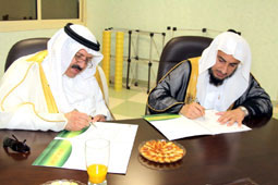 وقّع أمس الاثنين الشيخ الدكتور رياض المهيدب، رئيس مجلس إدارة جمعية تحفيظ القرآن رئيس محكمة بالجبيل، عقدًا لتوريد الخرسانة الجاهزة لإنشاء مدرسة خولة بنت حكيم لتحفيظ القرآن الكريم بالجبيل الصناعية، مع إحدى الشركات الوطنية، وذلك بعد أن تفضل صاحب السمو الملكي الأمير محمد بن فهد أمير المنطقة الشرقية مؤخرا بوضع حجر الأساس للمبنى.