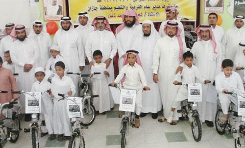 نيابة عن صاحب السمو وزير التربية والتعليم الأمير فيصل بن عبد الله قام مدير عام التربية والتعليم للبنين بجازان شجاع بن ذعار صباح أمس بتوزيع جائزة سموه لطلاب الصف الأول الابتدائي بمدرسة رمادة خلب الابتدائية والبالغ عددهم (40) طالبا والتي جاءت على إثر زيارة سمو وزير التربية والتعليم التي قام بها مؤخرا لمنطقة جازان والتي تضمنت زيارة مدرسة رمادة الابتدائية، حيث تجول سموه حينها في المدرسة وزار طلاب الصف الأول الابتدائي بالمدرسة وأعجب بمستواهم والبرامج التعليمية المقدمة لهم ليعلن سموه عن جائزة خاصة لهم في نهاية العام الدراسي بعد تحقيقهم لنتائج مميزة وكانت الجائزة عبارة عن دراجة هوائية لكل طالب. وقد أقيم حفل خطابي بالمدرسة بهذه المناسبة.
