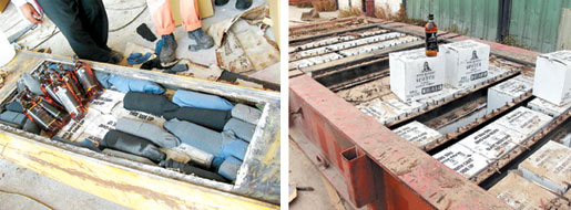 تمكن رجال الجمارك في جمرك ميناء الملك عبد العزيز بالدمام من إحباط عمليتي تهريب كمية من الخمور بلغ عددها 7248 زجاجة خمر كانت مخبأة بطريقة فنية داخل أرضية حاويتين على إحدى البواخر القادمة إلى الميناء، أوضح ذلك مدير عام جمرك ميناء الملك عبد العزيز بالدمام عثمان بن عبد
