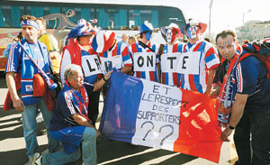 ذهبت جماهير منتخب فرنسا إلى نهائيات كأس العالم لكرة القدم في جنوب إفريقيا لمؤازرة الفريق الذي خيَّب الآمال ودخل في خلافات كبيرة خارج الملعب فلم تجد مجموعة من هذه الجماهير سوى توجيه السخرية والانتقادات اللاذعة للمدرب المثير للجدل ولاعبيه المتمردين.