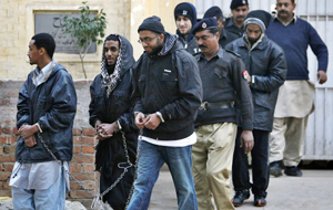 حكمت محكمة باكستانية أمس الخميس على خمسة شبان أمريكيين، اعتُقلوا بتهمة محاولة الاتصال بمتمردين مرتبطين بتنظيم القاعدة، بالسجن 10 أعوام بتهمة الإرهاب، كما أعلن مدع عام باكستاني. وهؤلاء الأمريكيون الخمسة، وهم طلاب من أصول باكستانية وإثيوبية وإريترية ومصرية، فروا من عائلاتهم في الولايات المتحدة، واعتُقلوا في سارغودا في كانون الأول/ ديسمبر 2009. وقال المدعي العام نديم أكرم شيما «إن كلا منهم حكم عليه بالسجن 10 أعوام بعدما تمت إدانته بالإرهاب». وكانت جلسات المحاكمة، كما جلسة النطق بالحكم، مغلقة.