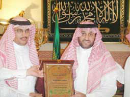 نيابة عن الدكتور ماجد المنيف المشرف العام على برنامج مكافحة التدخين بوزارة الصحة سلم مدير عيادة مكافحة التدخين بمحافظة الطائف عبدالعزيز العصيمي ودخيل الله الثقفي مساعد المدير ومنسق التوعية درعاً تذكارياً للشيخ أحمد العبيكان تقديراً لجهوده المبذولة في مجال مكافحة التدخين بالمحافظة ودعمه وتشجيعه لمعرض مكافحة التدخين الذي أقيم تحت شعار ( التدخين داء فتاك .. كفى) والذي شمل العديد من جوانب التوعية بأضرار التدخين كما كُرم التلفزيون السعودي وصحيفة الطائف الإلكترونية نظير تغطيتهما للعديد من المعارض والمحاضرات التي نفذها برنامج مكافحة التدخين.