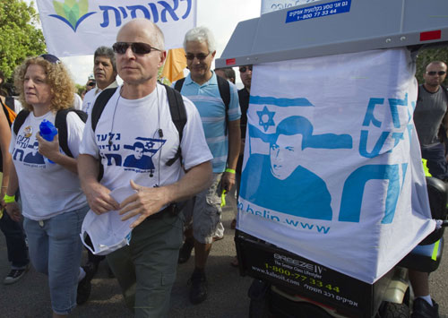بدأ آلاف الإسرائيليين صباح الأحد مسيرة من شمال البلاد إلى القدس للضغط على الحكومة لتوقيع اتفاق مع حركة حماس يقضي بالإفراج عن الجندي جلعاد شاليط مقابل الإفراج عن أسرى فلسطينيين. وهذه المسيرة التي انطلقت من ميتسبي هيلا، حيث منزل عائلة الجندي الإسرائيلي الذي يحمل أيضاً الجنسية الفرنسية، نظمها أهالي جلعاد شاليط بمناسبة الذكرى الرابعة لأسره على تخوم قطاع غزة. والمشاركون في هذه المسيرة التي تستغرق اثني عشر يوماً والذين ارتدى القسم الأكبر منهم تي - شيرت بيضاء واعتمروا قبعات كتب عليها «جلعاد لا يزال حياً»، رفعوا لافتات كتب عليها «لقد آن أوان عودة جلعاد إلى المنزل». وأمام المنزل العائلي في ميتسبي هيلا أعلن نوعام شاليط والد الجندي أمام الحشد «لن أعود إلى المنزل من دون جلعاد». وخلال المسيرة، سترافقه زوجته افيفا وولداه الآخران. وفي ختام المسيرة، تنوي عائلة جلعاد شاليط نصب خيمة قرب مقر رئيس الوزراء بنيامين نتانياهو حتى الإفراج عن ابنها. وأضاف نوام شاليط «لقد انتظرنا أربعة أعوام ولا نزال ننتظر، إن من أرسلوه إلى هناك، عليهم إعادته».
