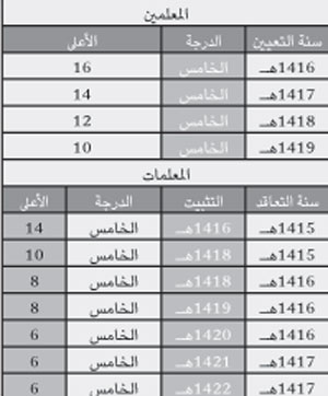 حيث تقرر أن تتم تسوية أوضاع المعلمين والمعلمات المعينين على المستويات التعليمية من حيث اختلاف الدرجة بين المعينين في عام واحد , وأن يتم منحهم درجة المستوى الذي يشغله حالياً وفق الدرجة الوظيفية الأعلى للمعينين في نفس العام ومن وصل للدرجة الأعلى نتيجة حصوله على درجات إضافية مكتسبة في مدارس أهلية أو دورات تدريبية لا يمنع من مساواته مع نفس الدفعة الواحدة واستفادته من الدرجات الإضافية الممنوحة له وقد جاءت الدرجات الأعلى حسب البيان التالي: