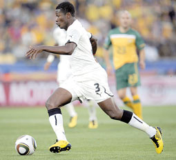 وسجل جيان ثلاثة أهداف من أصل أربعة لغانا في النهائيات، بينها هدفان من ركلتي جزاء، لكنه يعاني من إصابة في كاحله الأيسر لن تحرمه خوض ربع النهائي أمام الأوروغواي غدا الجمعة في جوهانسبورغ: «الإصابة ليست قوية. كنت بحاجة ليومين من الراحة».واعتبر جيان (23 عاما) أن الأوروغواي مرشحة للفوز، وقال إنه «من المهم أن تكون إفريقيا وراء» فريقه.وبحال فوزها على الأوروغواي، ستصبح غانا أول منتخب من القارة الإفريقية يبلغ نصف النهائي في تاريخ المسابقة.