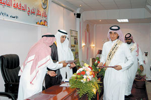 رعى مدير عام هيئة الري والصرف بالأحساء المهندس أحمد بن عبدالله الجغيمان يوم أمس الأول الأربعاء حفل تخريج الدفعة الثانية والثلاثين من طلبة مركز التدريب البيطري والإنتاج الحيواني بالأحساء والبالغ عددهم 37 خريجا, وقد تحدث الجغيمان في الحفل مقدما التهنئة للخريجين، ومشيدا بدور المركز خلال الثلاثة عقود الماضية في إمداد سوق العمل المحلية بالكوادر المؤهلة للعمل في المجال البيطري، كما أكد حرص وزارة الزراعة على مواكبة العملية التعليمية في المركز للتطور في المجالات التعليمية والعملية، متمنيا للخريجين التوفيق، كما تخلل الحفل مسيرة الخريجين، ثم ألقى مدير المركز محمد العواد كلمة أكد فيها تواصل المركز مع الخريجين دائما لإمدادهم بالجديد والمهم في مجال التخصص، بعد ذلك أعلن علي العواد المدير التعليمي في المركز أسماء الخريجين الذين قاموا بالسلام على راعي الحفل واستلام بطاقات التخرج كما تم تكريم الطلبة المثاليين من كافة المراحل بالمركز.