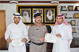 كرم مدير شرطة محافظة حفر الباطن العقيد ركن ضيف الله العتيبي ثلاثة من المواطنين على أمانتهم بإعادة مبالغ مالية وجهاز حاسب محمول إلى صاحبها بعد أن وجدوها على أحد الشوارع الرئيسية بالمحافظة. وقام مساعد مدير الشرطة للشؤون الإدارية العقيد ركن معدي العماني نيابة عن مدير الشرطة بتكريمهم وتقديم شهادات تقدير لهم.