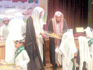 أقام برنامج الرياحين لتحفيظ القرآن الكريم الحفل الختامي لتخريج أول دفعة خاتمين بالبرنامج وبدأ الحفل بآيات من الذكر الحكيم تلاها الطالب سعيد خان ثم تلا ذلك نشيد البرنامج بعد ذلك ألقى المشرف العام على البرنامج الشيخ خالد بن عابر العنزي كلمة أورد فيها فضل حفظ القرآن ونشأة برنامج الرياحين ومراحل تطوره عقب ذلك كلمة د. إبراهيم البشر والذي أشار إلى أهمية مثل هذه البرنامج التي تهتم بهذا النشء المبارك وختم البرنامج بتكريم المعلمين والطلاب المتفوقين.