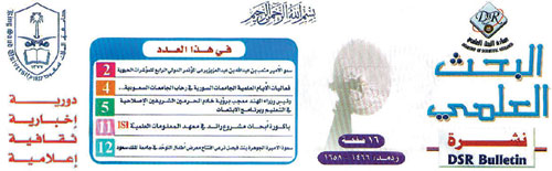 أصدرت عمادة البحث العلمي بجامعة الملك سعود العدد (13) من نشرتها الدورية.. البحث العلمي لشهر رجب 1431هـ يونيو 2010م.