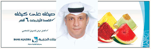 «واعتماداً على تلك الإستراتيجية الطموحة وتزامناً مع الإجازة الصيفية أطلق بنك الجزيرة هذه الحملة الترويجية للتمويل الشخصي والتي تمكّن العميل من الحصول على تمويله المطلوب لتغطية كافة احتياجاته الشخصية والعائلية ولا يترتب عليه أي التزام تجاه البنك خلال الـ 6 شهور الأولى .. كل ذلك بإجراءات ميسرة فائقة السرعة في التنفيذ «.