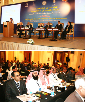 شاركت المملكة في المؤتمر السنوي العام الحادي عشر الذي تعقده المنظمة العربية للتنمية الإدارية بالتعاون مع وزارة التنمية الإدارية ومنظمة الشفافية الدولية ومنظمة التعاون الاقتصادي والتنمية والمنظمة العربية لمكافحة الفساد تحت شعار (الإبداع والتجديد في الإدارة العربية) بعنوان: نحو إستراتيجية وطنية لمكافحة الفساد انطلاقا من يوم السبت الموافق 3 يوليو الجاري ولمدة 3 أيام بمشاركة ممثلين عن 19 دولة عربية وعدد من الدول الإقليمية والأوروبية والآسيوية والمنظمات العالمية وقد تكون وفد المملكة المشارك في المؤتمر من 6 وزارات حكومية كان منها وزارة التعليم العالي ووزارة التربية والتعليم ووزارة الدفاع والطيران ووزارة المالية ووزارة البترول والثروة المعدنية ووزارة العدل إضافة إلى جامعة نايف التعليمية.